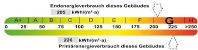 | Endenergieverbrauch oder -bedarf | Energieeffizienzklasse |